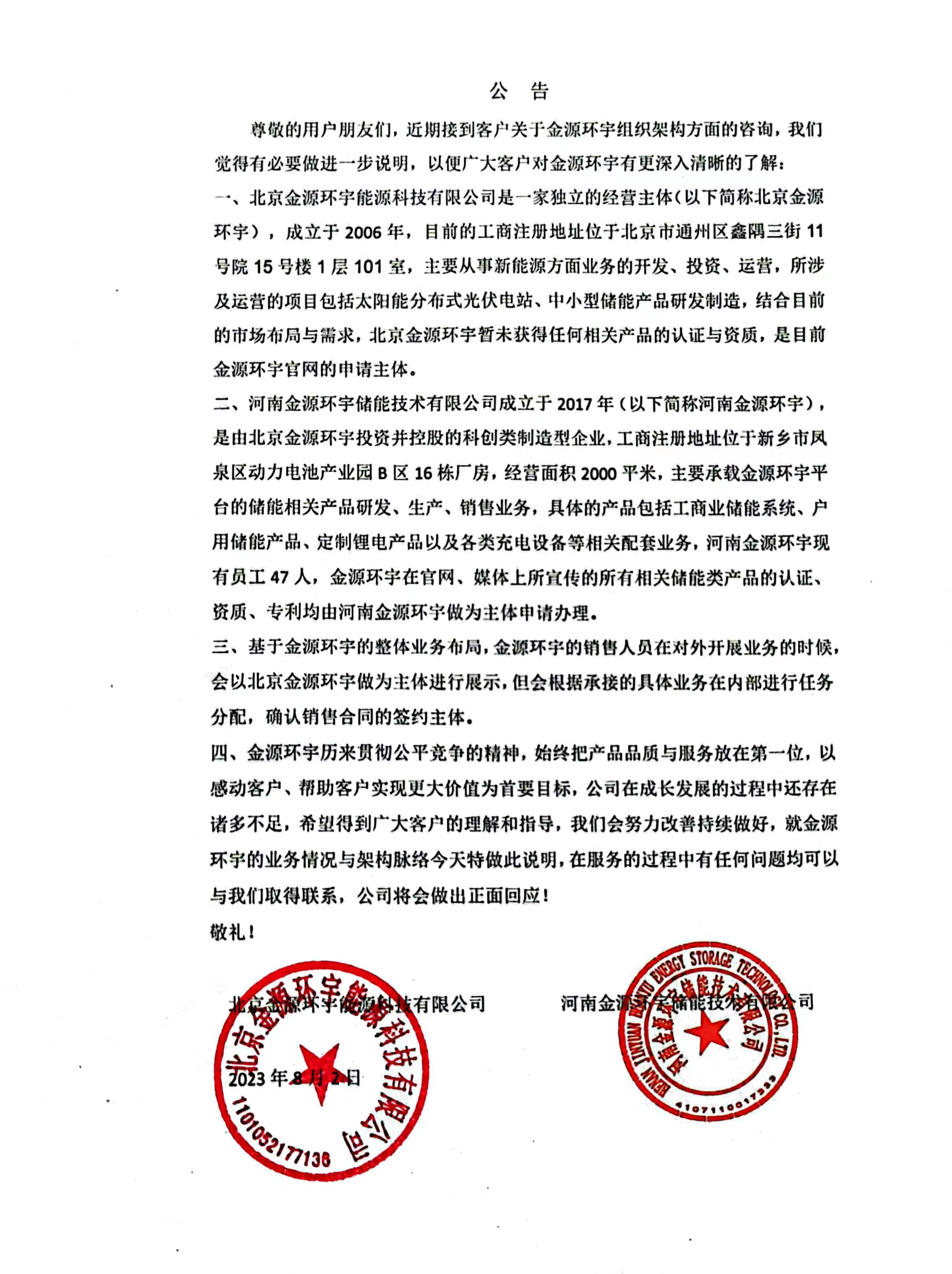 Announcement Regarding the Organizational Structure of Jinyuan Huanyu