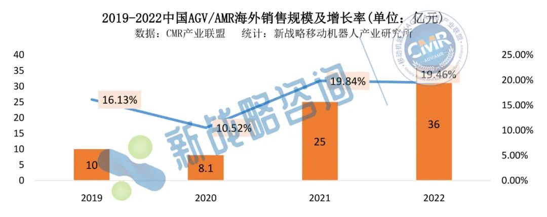 2019-2022 China's AGV/AMR Overseas Sales Scale and Growth Rate