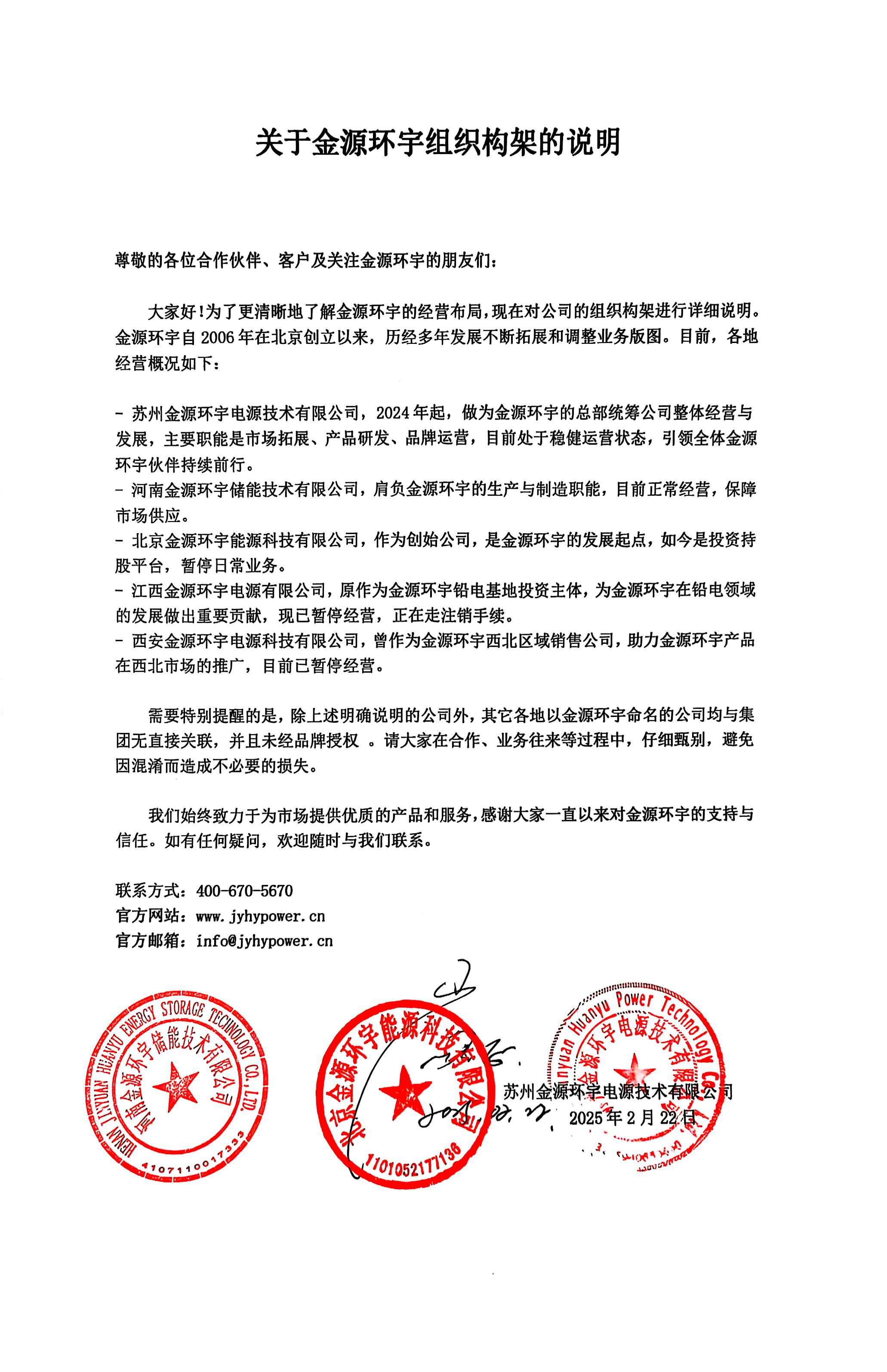 Suzhou Jinyuan Huanyu Power Technology Co., Ltd. 2025 Spring Festival Holiday Notice