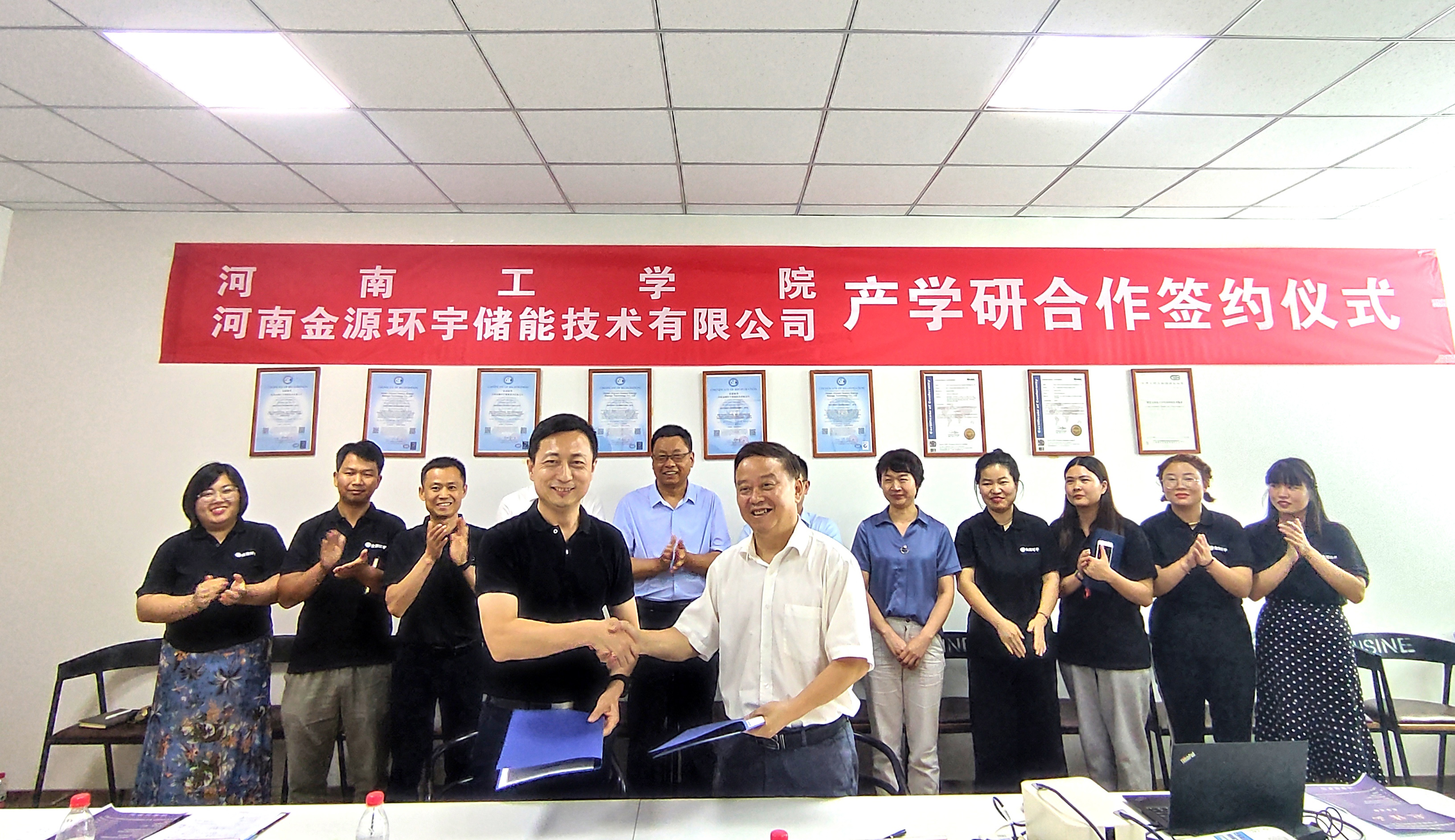 On the morning of June 30th, under the guidance of leaders from the Xinxiang Municipal Science and Technology Bureau and the Fengquan District Science, Technology and Industry Bureau, Jinyuan Huanyu and Henan University of Technology officially signed a cooperation agreement on industry-university-research collaboration. The two parties will reach specific cooperation agreements in the fields of new energy batteries, lithium battery energy storage, and intelligent control. This signing marks a new chapter in Jinyuan Huanyu's collaboration with universities and enterprises, and will greatly enhance the company's technological strength and scientific research innovation level. Leaders from the Municipal Science and Technology Bureau and the District Science, Technology and Industry Bureau, Director Yang from Henan University of Technology, Dean Su and Professor Zheng from the School of Materials Science and Engineering, leaders from the Fengquan District Power Battery Industrial Park Management Committee, and Cui Zheng, General Manager of Jinyuan Huanyu, attended the signing ceremony.