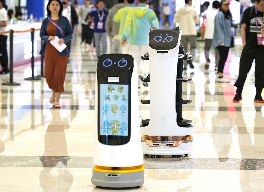 Inside the venue, intelligent service robots acted as "tour guides".