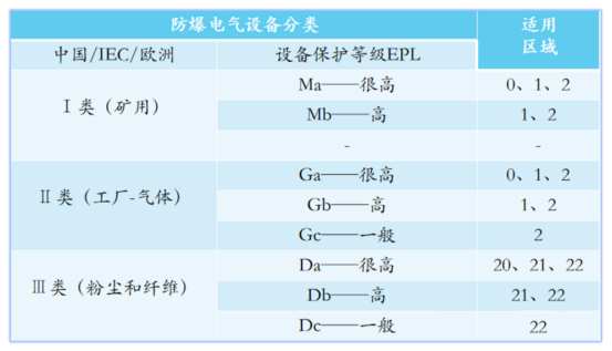 The applicable areas for explosion-proof electrical equipment are shown in the following diagram: